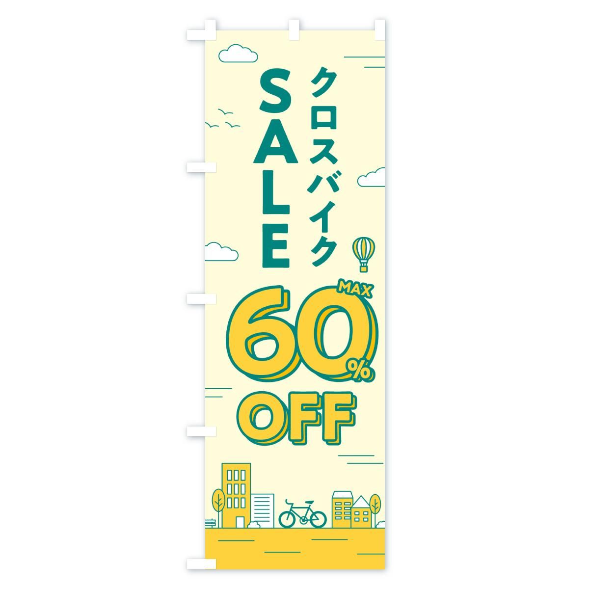 内容のぼり クロスバイクセール60%OFF・クロスバイクSALE・自転車 のぼり旗