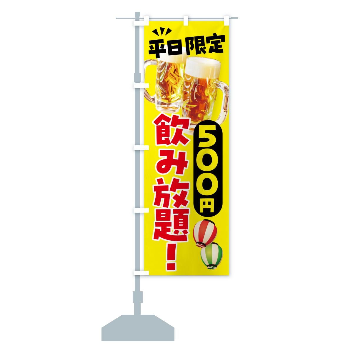 内容のぼり 飲み放題・平日限定500円 のぼり旗