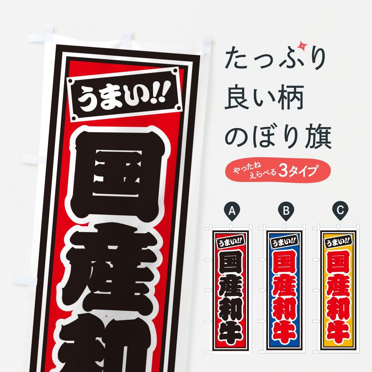 内容のぼり 国産和牛・レトロ・千社札風 のぼり旗