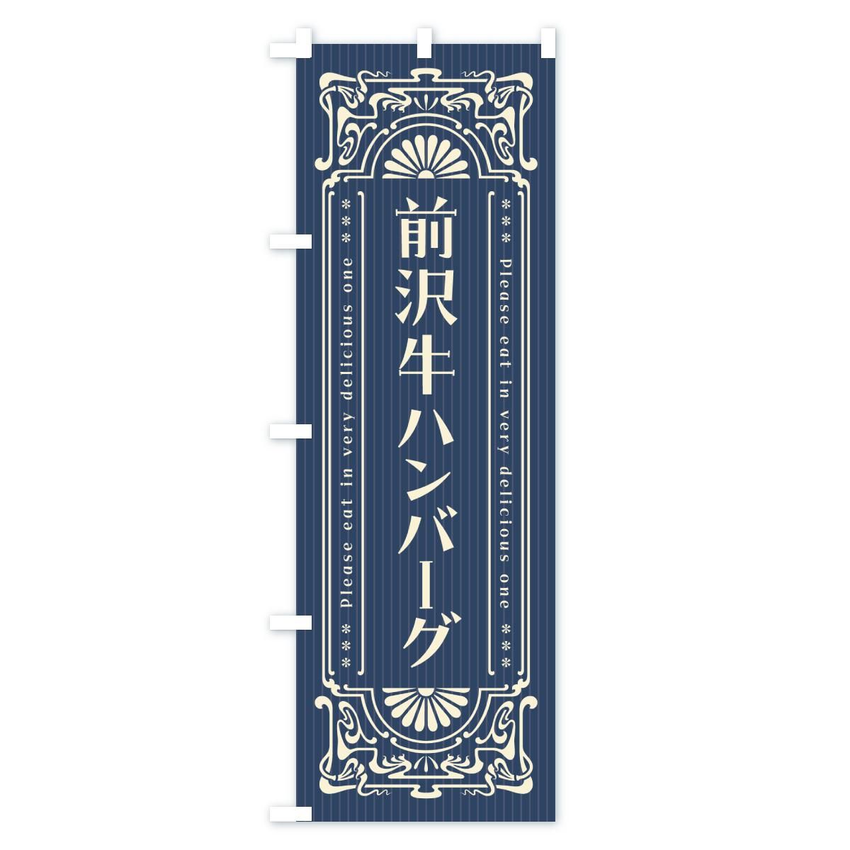 内容のぼり 前沢牛ハンバーグ・和牛・ブランド牛・レトロ風 のぼり旗