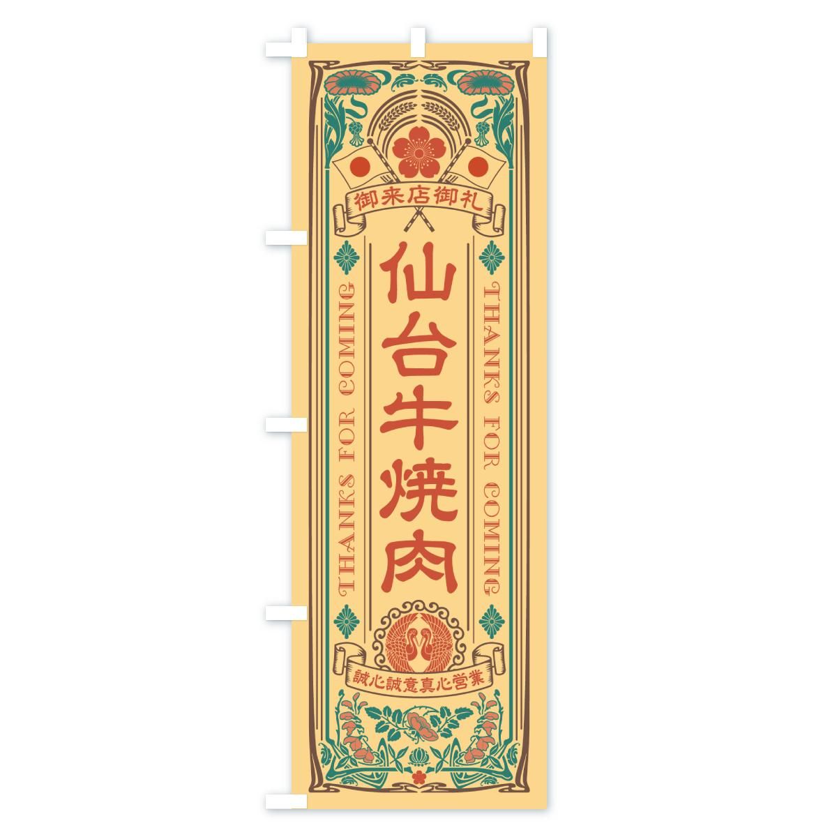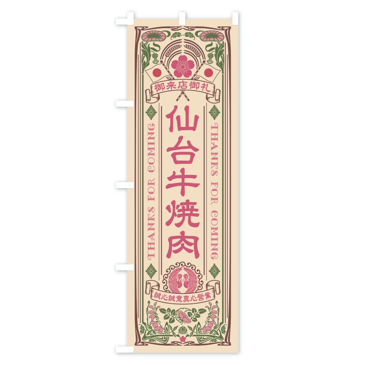 のぼり 仙台牛焼肉・和牛・ブランド牛・レトロ風 のぼり旗
