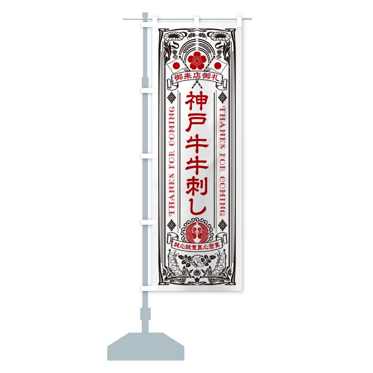 のぼり 神戸牛牛刺し・和牛・ブランド牛・レトロ風 のぼり旗