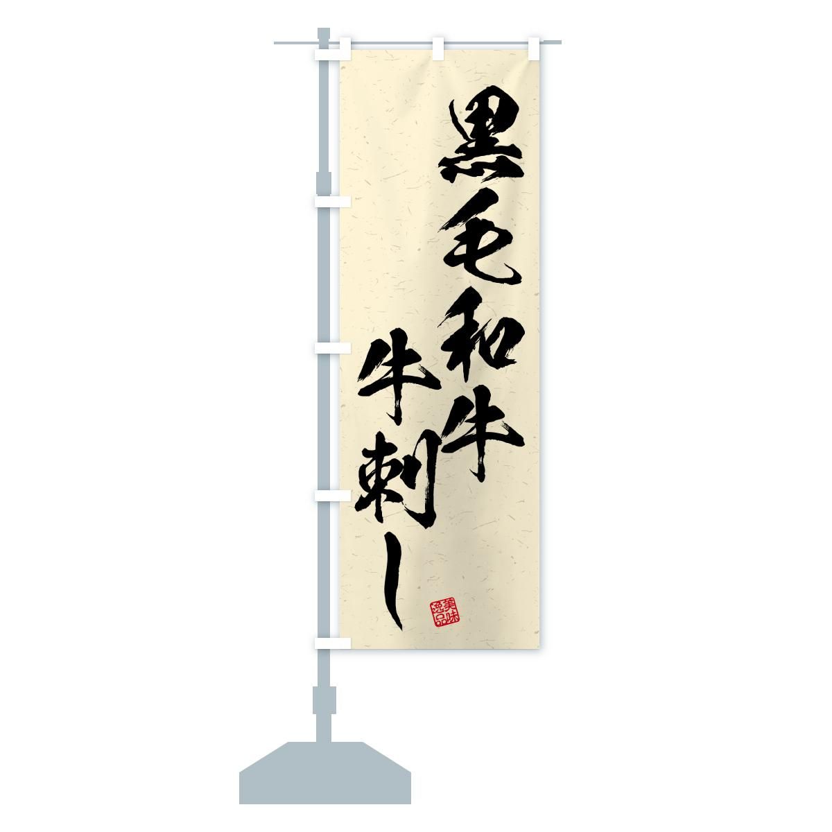 内容のぼり 黒毛和牛牛刺し・和牛・ブランド牛・書道風 のぼり旗