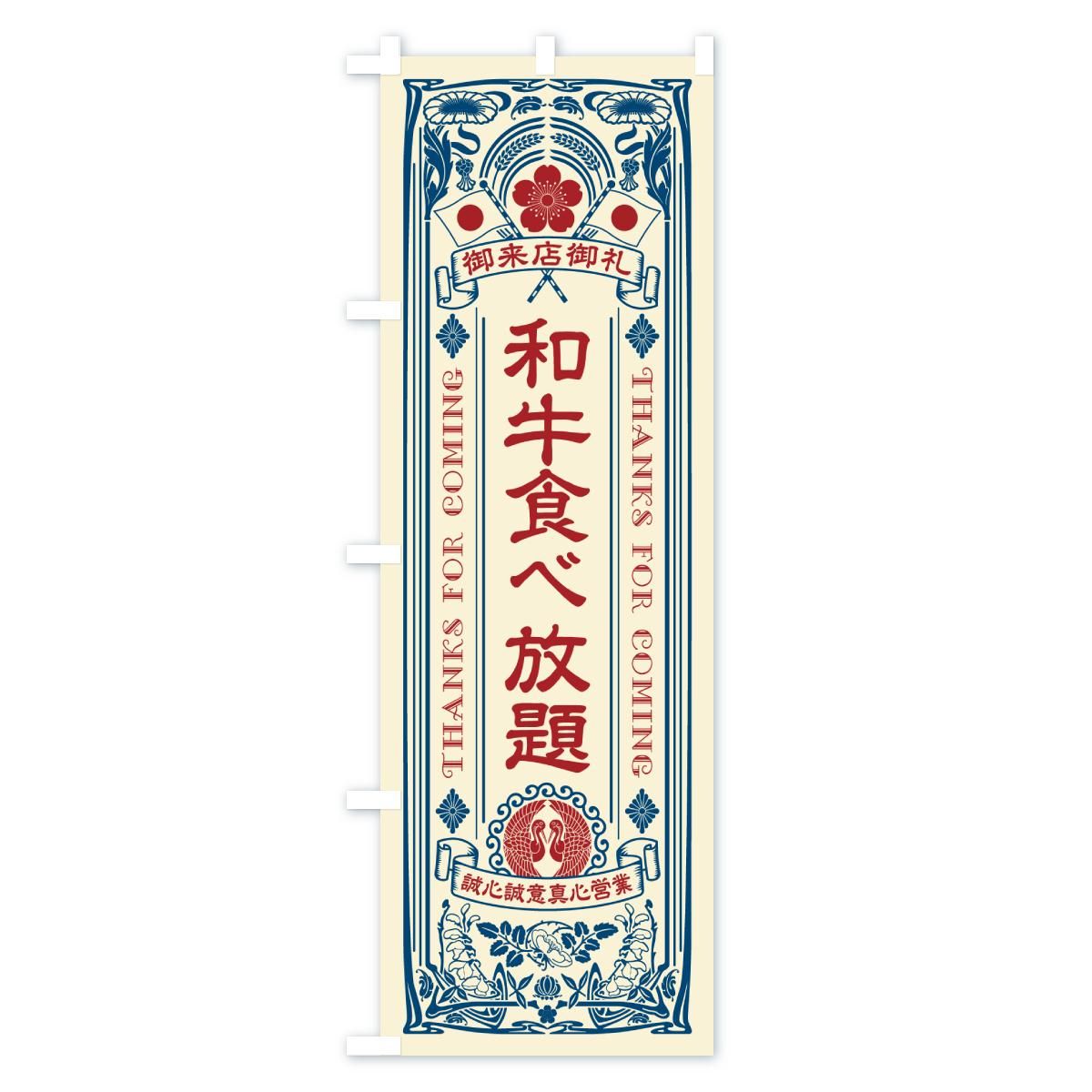 内容のぼり 和牛食べ放題・ブランド牛・レトロ風 のぼり旗