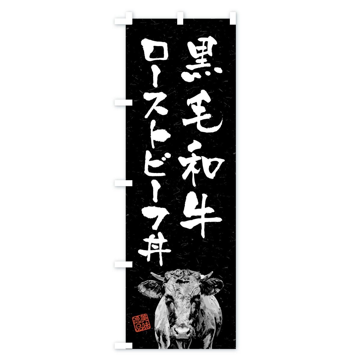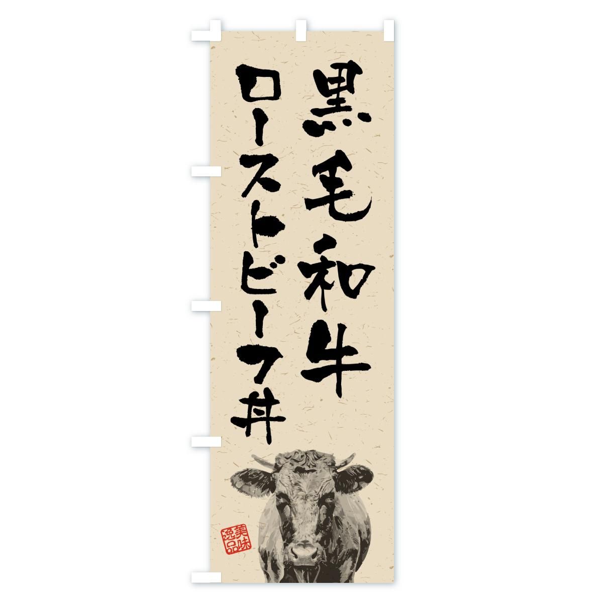 内容のぼり 黒毛和牛ローストビーフ丼・ブランド牛・水墨画・書道 のぼり旗