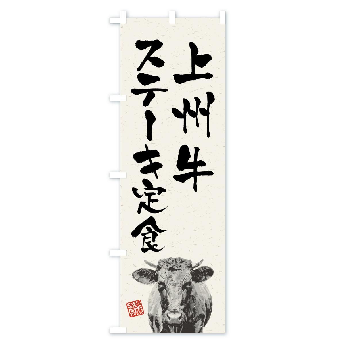 のぼり 上州牛ステーキ定食・和牛・ブランド牛・水墨画・書道 のぼり旗