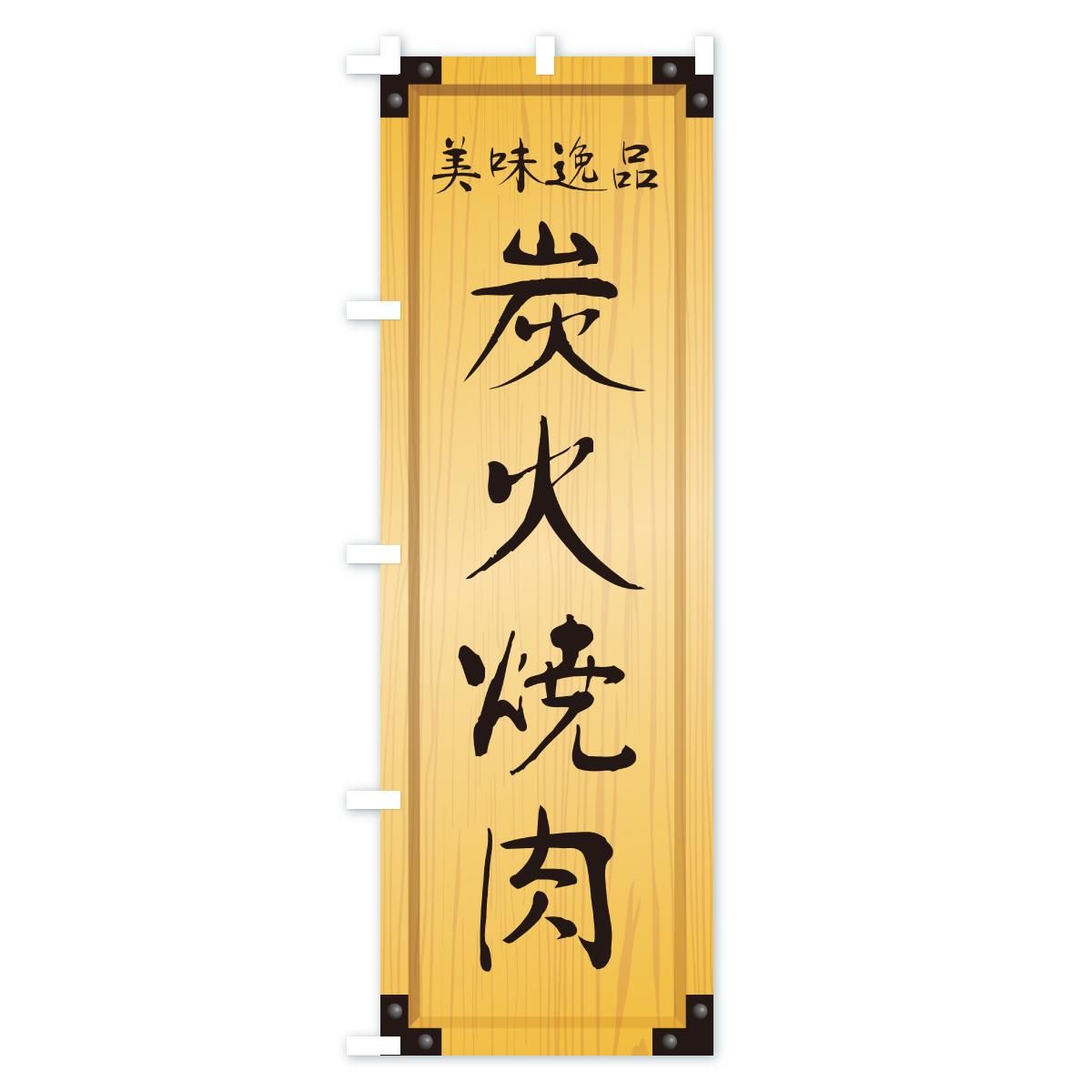 のぼり 炭火焼肉・木製看板風・木目 のぼり旗