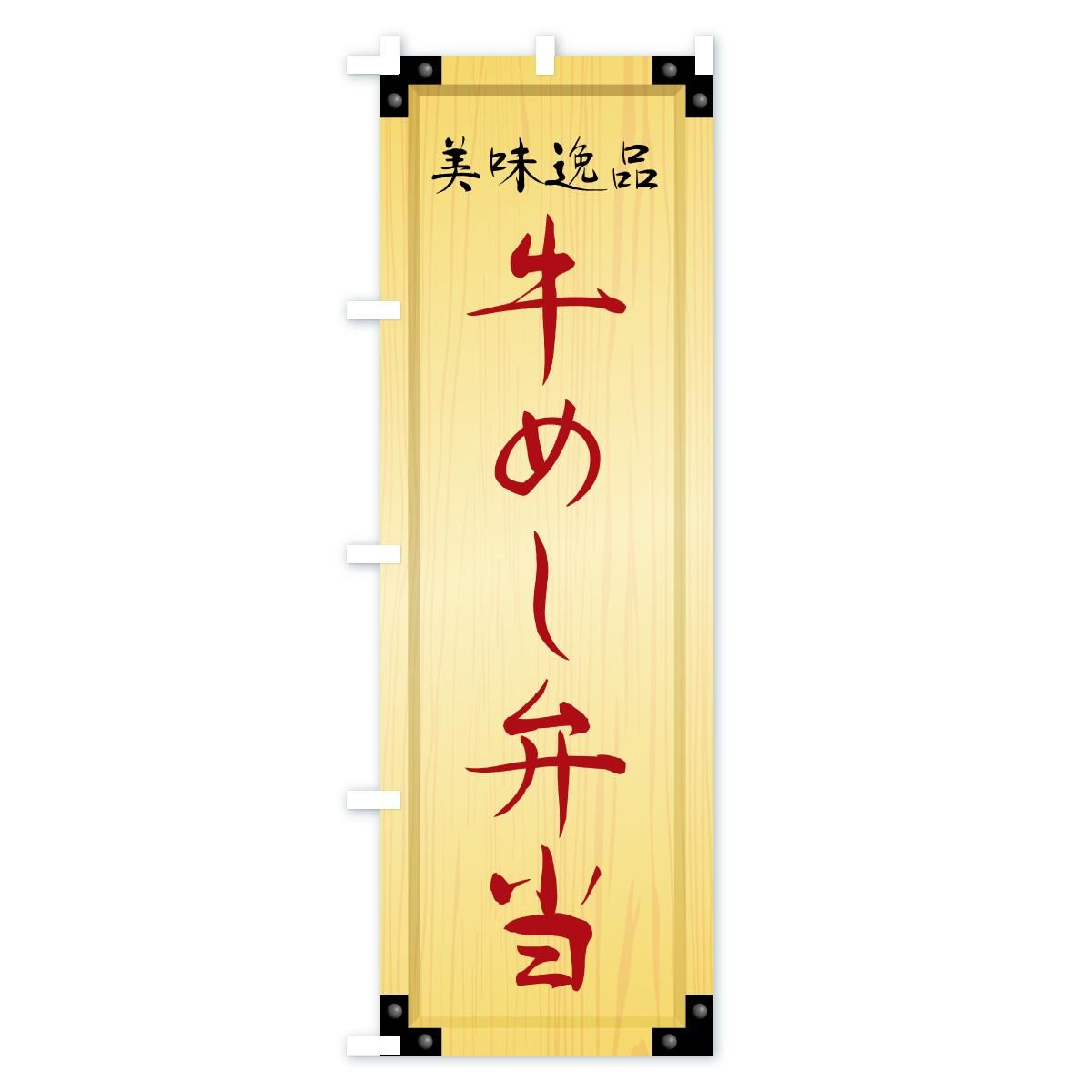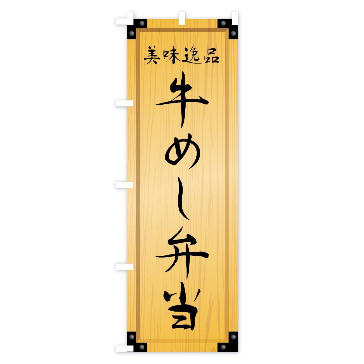 内容のぼり 牛めし弁当・木製看板風・木目 のぼり旗