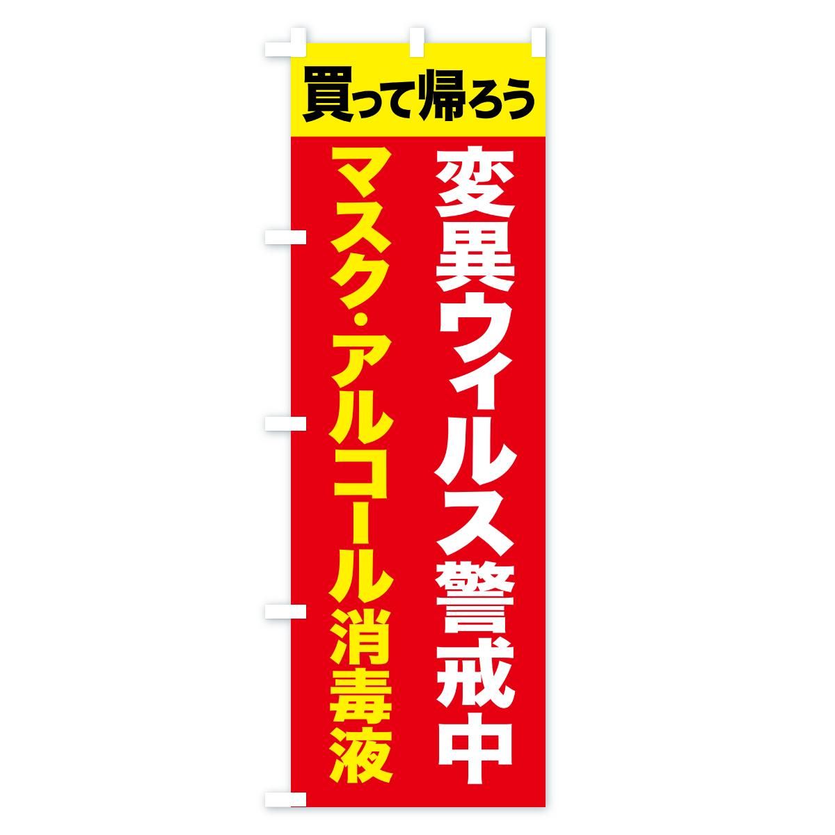 内容のぼり 変異ウィルス警戒中・変異株・新型コロナ・風邪対策 のぼり旗