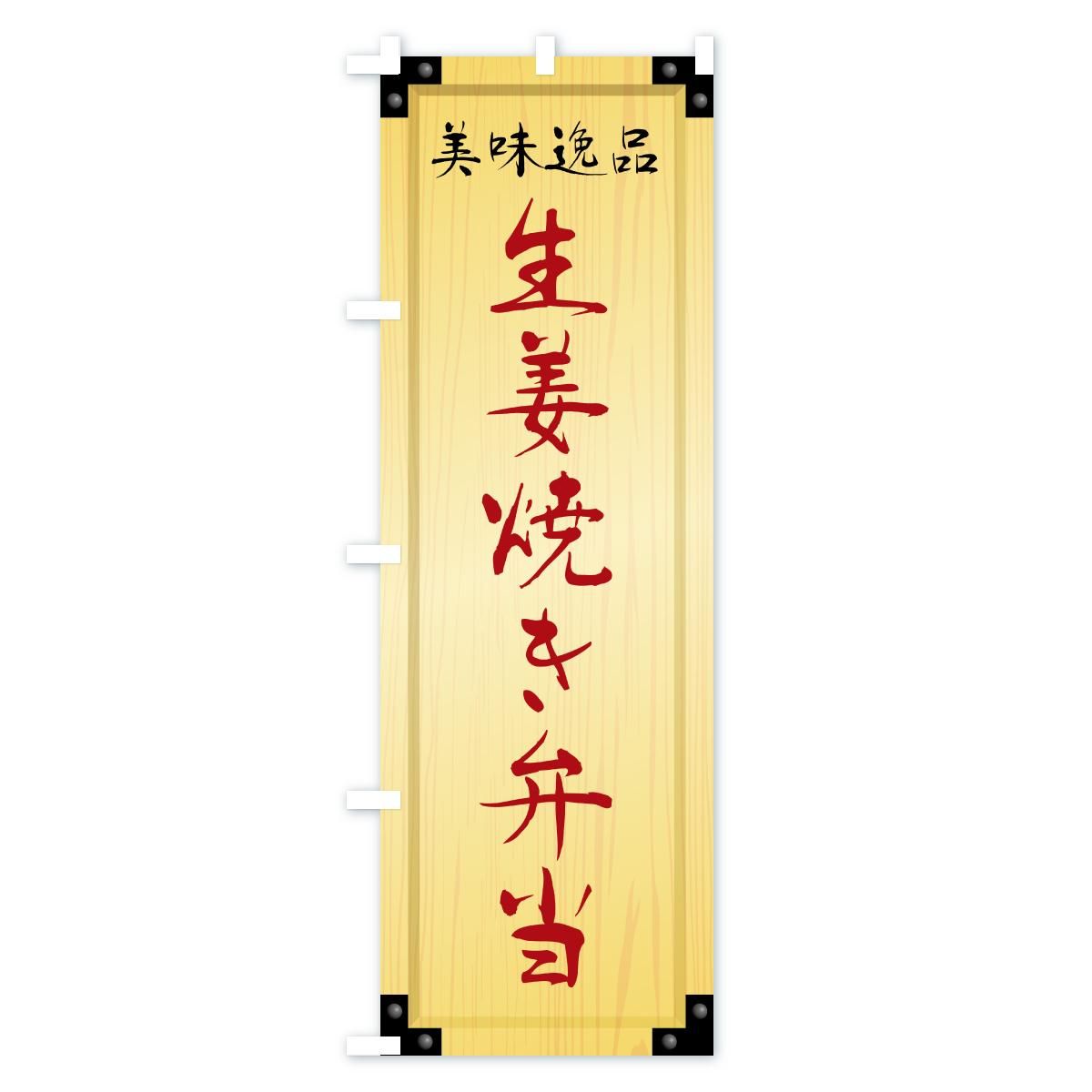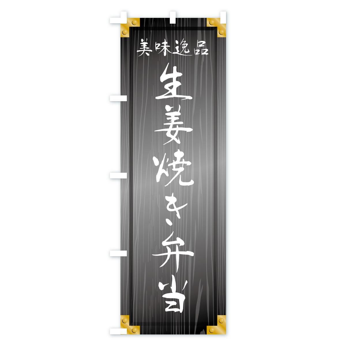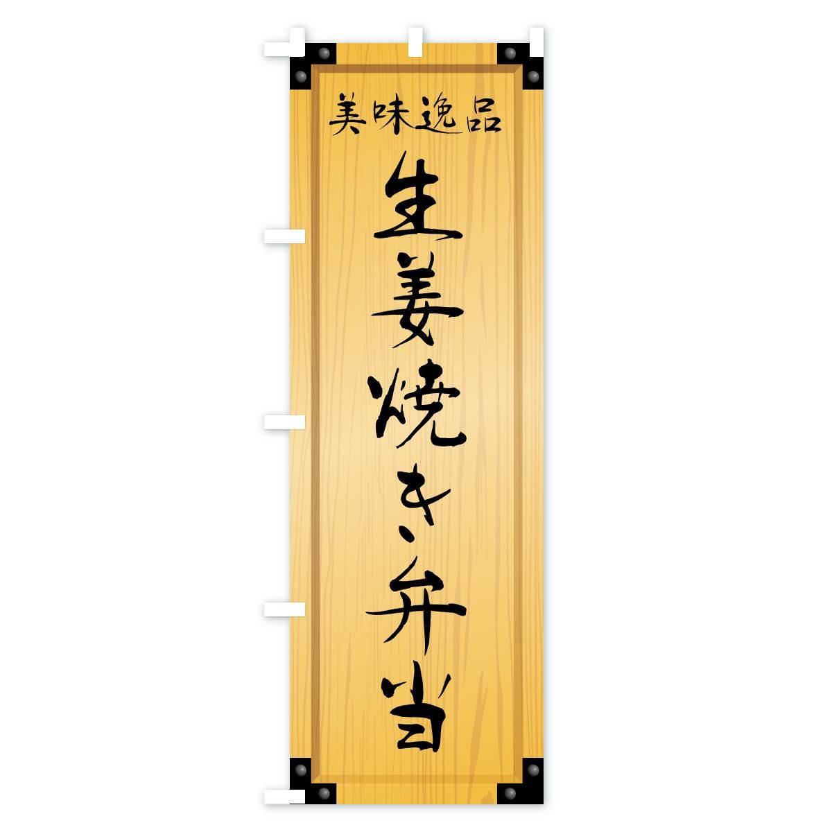 内容のぼり 生姜焼き弁当・木製看板風・木目 のぼり旗