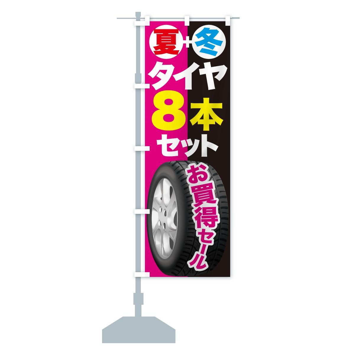 内容のぼり タイヤ8本まとめ買い・タイヤ8本セット・夏冬タイヤセット のぼり旗