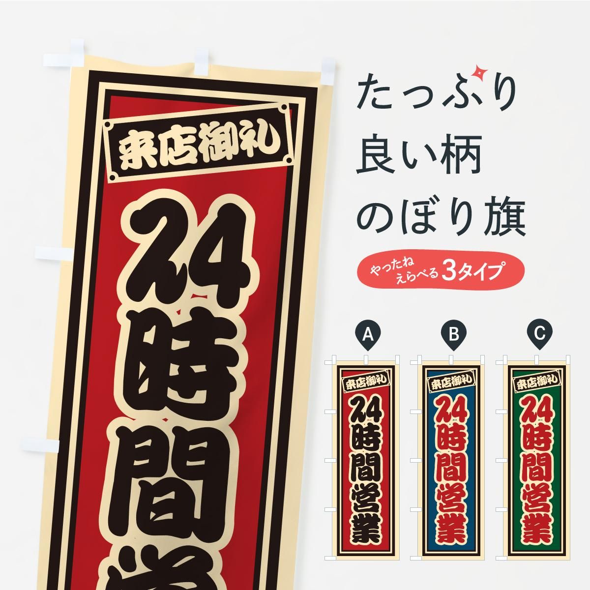 内容のぼり 24時間営業・レトロ・千社札風 のぼり旗